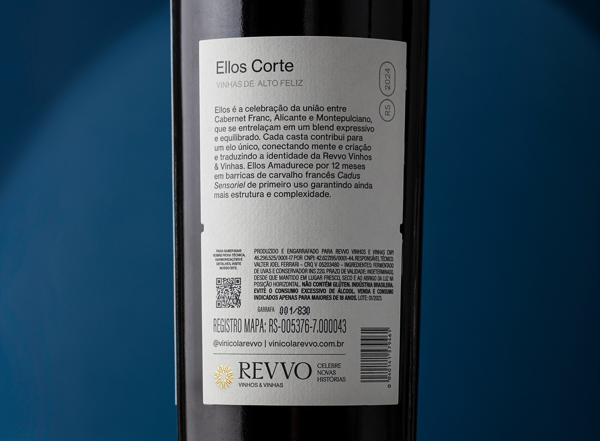 Três castas, três sensações. Cabernet Franc, Alicante e Montepulciano encontram a inventividade da mente, criando uma composição que dobra a percepção como um desenho de Escher. O equilíbrio e a complexidade se desdobram em camadas neste blend da Revvo Vinhos & Vinhas, convidando o olhar e o paladar a redescobrir a harmonia a cada instante. Ellos, amadurecido por doze meses em barricas de carvalho francês Cadus Sensoriel de primeiro uso, ganha estrutura e profundidade, dando forma a um vinho que permanece na memória. Uma metáfora de conexão, onde arte, natureza e imaginação convergem em uma única experiência.
