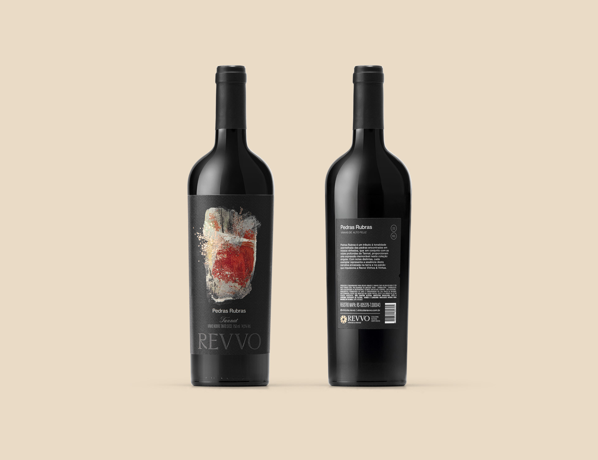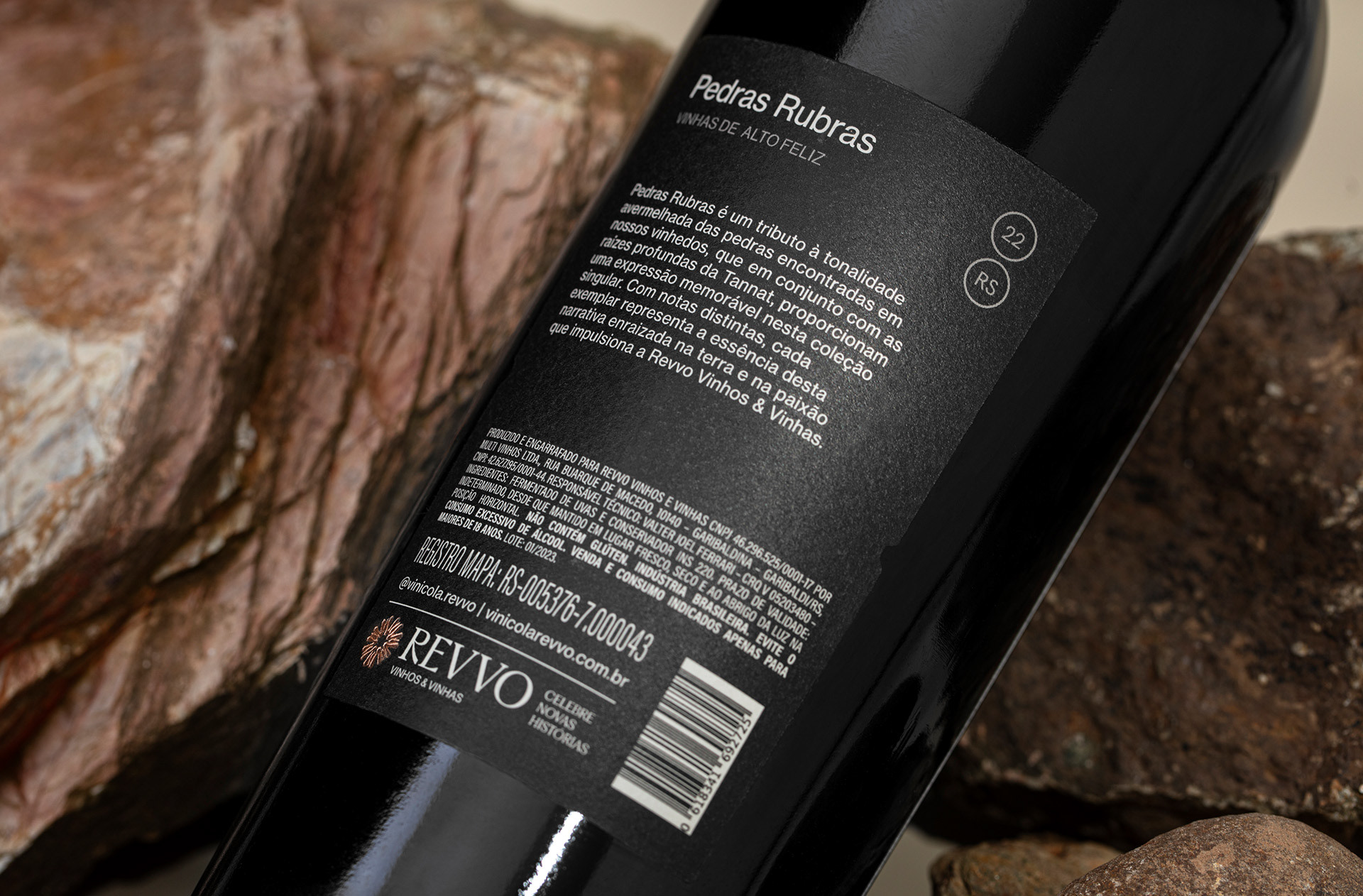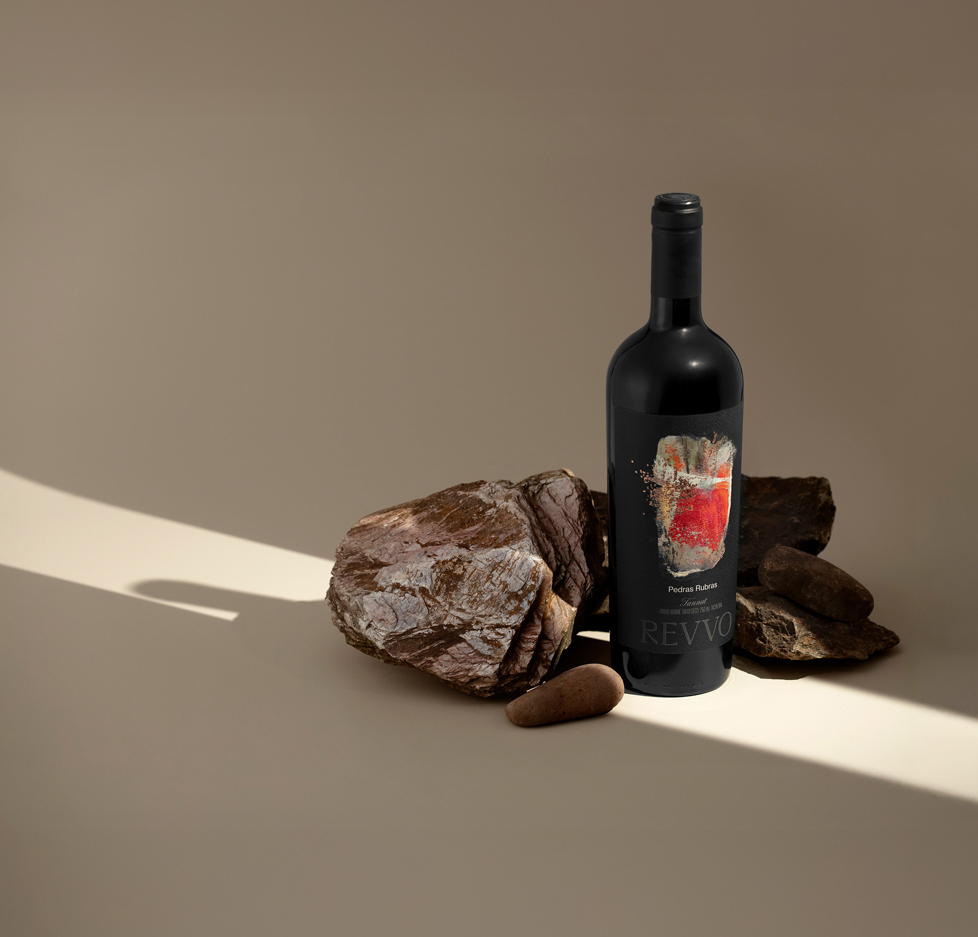 Walking through the vineyards, the red soil and its dense stones reveal the silent strength that shapes these vines. Inspired by this landscape, Pedras Rubras embodies the depth of Tannat, expressing a character both vibrant and grounded. Each layer reflects the harmony between land and passion, a story rooted in origin and devotion that mirrors the soul of Revvo.